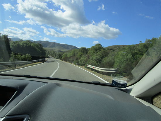Da wir nicht zu dritt auf das Motorrad passen, fährt Rolfs Ornellas Auto. Start 9.30 Uhr. SS 196 Gonnosfanadiga, Villacidro, SS 293 Vallermosa, Siliqua, vorbei am Castello di Acquafredda. Um 11 Uhr treffen wir bei Daniela ein.