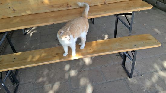 Während Rolf noch zu einem römischen Steinbruch läuft, gehe ich zurück zum Kiosk. Dort haben sich einige Katzen und Hunde versammelt, die nicht scheu sind und sich fotografieren lassen.