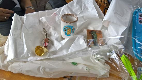 Die Dame am Ticketschalter, wo man auch kleine Andenken kaufen kann, schenkt mir gleich zum Dank fürs Wiederkommen zwei Aufkleber für mein Auto. Preislich nicht die Welt – 2 Euro – aber eine nette Geste.