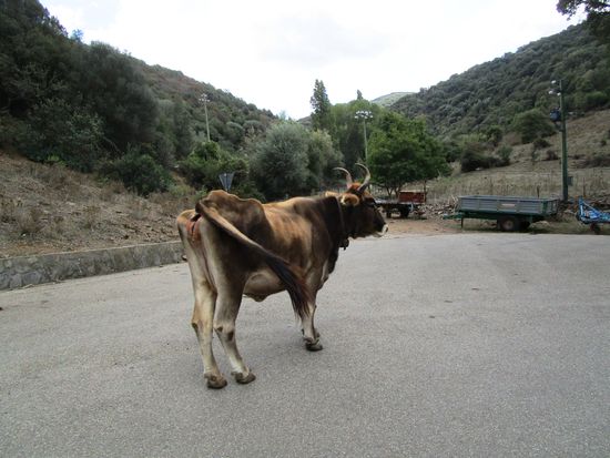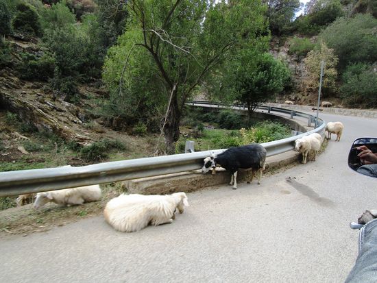 Nach 12.30 Uhr fahren wir weiter. Unterwegs begegnen uns mal wieder Schafe oder Rinder mit furchteinflößenden Hörnern. Sie schauen aber nur und lassen uns passieren.