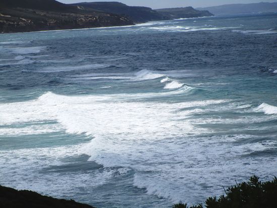 SP 84, Passo Genna Bogai, 549 m, SS 126, SP 83 Fontanamare, Nebida, Masua mit dem berühmten Pan de Zucchero, das Meer ist heute sehr aufgewühlt. Die Wellen peitschen ans Land. Sieht herrlich aus.