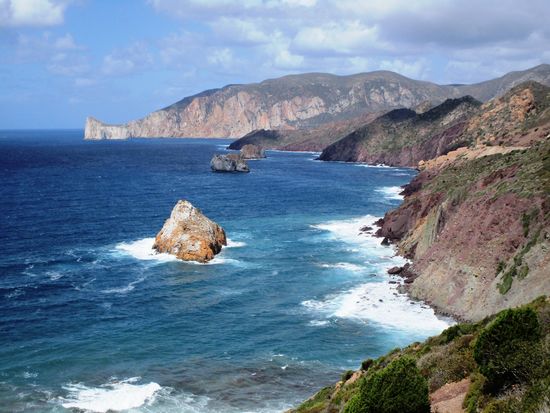 Der heute winzige und nur im Sommer bewohnte Weiler lockt mit herrlichen Sandbuchten, wild zerklüfteten Steilhängen, geheimnisvollen Grotten, einem hoch über dem Meer liegenden ehemaligen Zechenhafen und dem berühmten 133 Meter aus dem Wasser ragenden Pan di Zucchero.