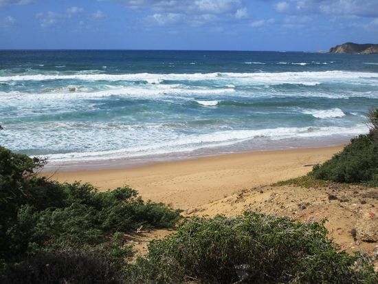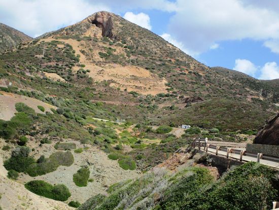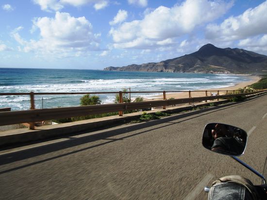 Weiter durch das Gebirge – eine herrliche Strecke, sehr kurvenreich - bis nach Buggerru. Dort kurzer Halt am Hafen, aber hier gefällt es uns nicht so sehr. Also weiter bis San Nicolao. Dort am Strand Pause. Vor Jahren habe ich hier mal Muscheln gesammelt, heutzutage ist das verboten.