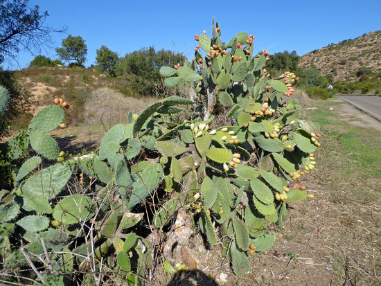 Herrlich die riesigen Kakteen, die entlang der Straßen wachsen. Sie tragen Früchte, die oft von älteren Männern mit langen Haken gepflügt werden. Die Stacheln der Früchte sind teuflisch.