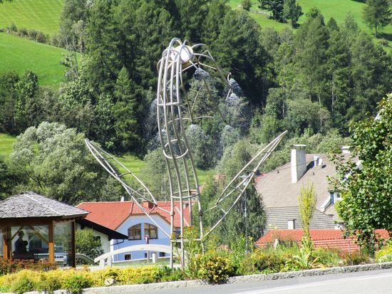 12.15 Uhr nächste kurze Pause in Rennweg auf einer Bank. Wunderschön dort. Uns stechen einige Kunstwerke ins Auge. Weiter durch das liesertal. A 10.