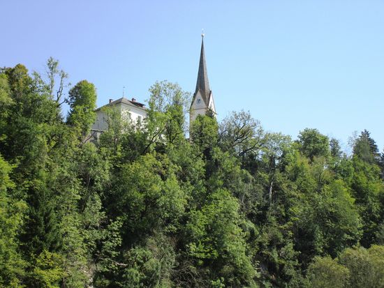Herrlich die Felsenburg Landskron am westlichen Beginn der Ossiacher Tauern auf dem Plateau eines Felskegels, der 135 m über der Ebene aufragt. In der Burg befindet sich die Adlerarena Burg Landskron, wo im Sommer öffentliche Greifvogelschauen abgehalten werden.