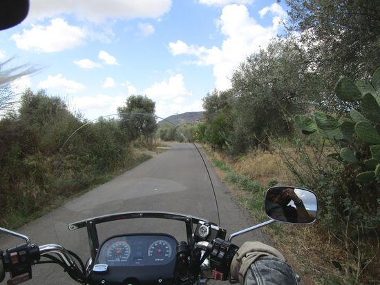 Wir machen uns nun durch die schöne Berglandschaft auf den Heimweg. Gegen 14.45 Uhr sind wir zurück in Villamassargia, nach 62 Meilen = 100 km.