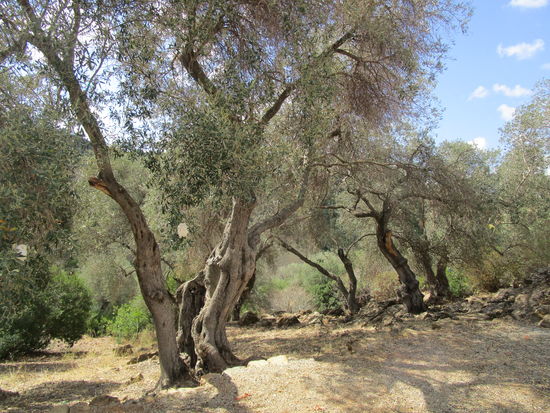 Hier hat wohl eine Hochzeit stattgefunden. In den Bäumen hängt noch der bunte Schmuck. Leider ist die Kirche geschlossen, aber von Außen ist sie zu bewundern. Sie liegt hier oben auf dem Berg, einsam, umgeben von alten Olivenbäumen, eine Oase der Ruhe und des Friedens. Wir genießen diese Ruhe sehr.