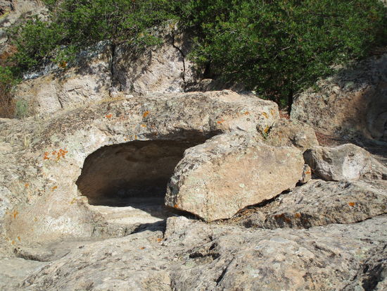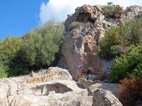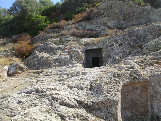 Nun geht es weiter, über SP 80 zum Parco Archologico Necropoli di Montessu. Die herrlich gelegene Anlage umfasst einen Hügel, in dem sich mehr als 40 Domus de Janas – Felskammergräber - verschiedener Bauart befinden.