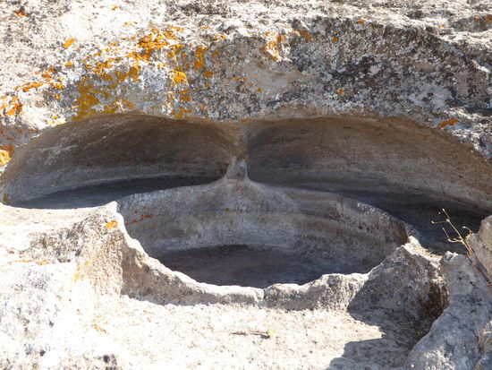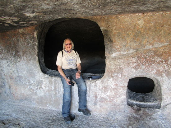 Es ist wirklich eine phantastische Landschaft, in der sich die vielen Felsgräber befinden. Wir können uns nicht satt sehen an der Schönheit der Gegend. Und natürlich werden alle Gräber, die in Reichweite sind, von Rolf ausgiebig erkundet. Er klettert in jede Höhle, wo es erlaubt ist, hinein. Ich halte mich da eher zurück. Man weiß nicht, auf wen man da stößt.