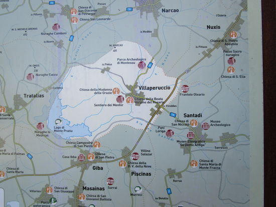 Beim nahen Dorf Terrazzu steht die Luxia Arrabiosa, der über 5 Meter hohe, größte Menhir der Insel. In der Nähe von Montessu liegt die Tropfsteinhöhle Grotte is Zuddas und die punische Nekropole Pani Loriga.