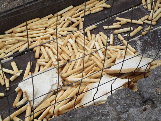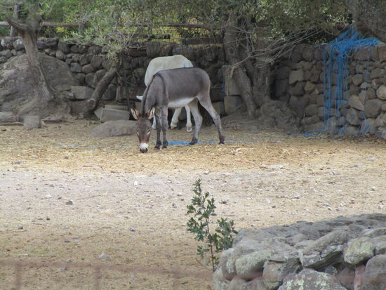 Am Eingang auf dem Gelände des Parks sind einige Esel untergebracht. Gefüttert werden die mit Grissini und altem Weißbrot, das grenzt für mich schon an Tierquälerei. Schnell noch einige Bilder von den Eseln und dann verlassen wir diesen interessanten Ort.