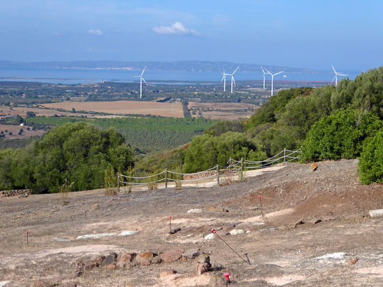 Etwa 4 km nordwestlich von Carbonia nahe der SS 126 bei Dorf Sirai ragt ein 190 m hoher vulkanischer Tafelberg aus der Landschaft, der Monte Sirai.