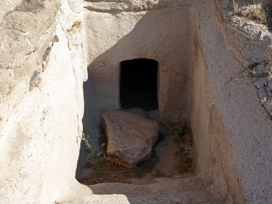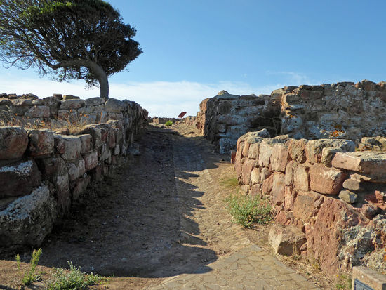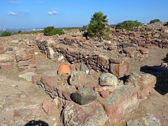 Nekropole: Die Nekropole liegt in einer Senke unterhalb der Akropolis, wo unter dem Trachyt (vulkanisches Gestein) Mergelschichten (Sedimentgestein) zu Tage treten. In diesem weichen Gestein wurden im 7. Jh. v. Chr. etwa 50 phönizische Brandgräber und ab etwa 500 v. Chr. ein Dutzend punische Kammergräber angelegt.
