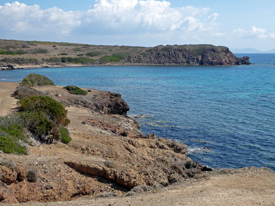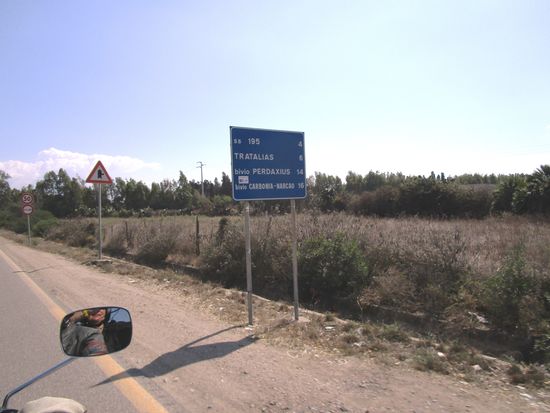 Über die SS 126 fahren wir nach Sant’Antioco. Dann über die Via della Rinacita, Strada Comunale Maladroxia an der langen Spiaggia Conisoni entlang, wobei wir immer wieder schöne Ausblicke auf das Meer erhaschen können. So kommen wir zur kleinen Feriensiedlung Maladroxia. Leider will Rolf nicht überall halten.