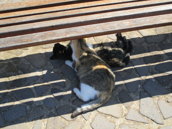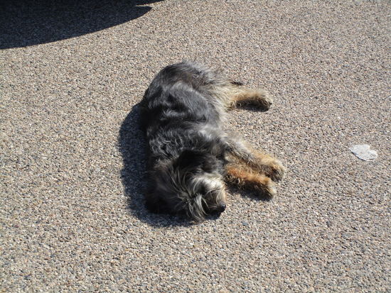 Gegen 11.30 Uhr verlassen wir den Monte Sirai, nicht ohne vorher einige Bilder der Hunde und Katzen, die sich dort tummeln, gemacht zu haben. Wie uns Peter Schmidt später erzählt, kümmern sie sich auch um diese verlassenen Tiere.