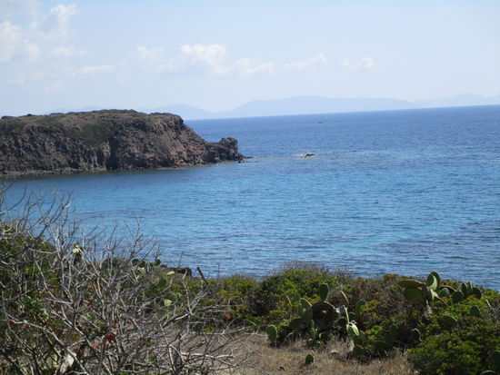 Teresa leistet mir, als ich mich auf einer Bank im Schatten ausruhe, Gesellschaft und erzählt mir alte Geschichten. Ich bin natürlich begeistert über solche Begegnungen. Zum Abschied schenkt sie mir einige schöne Bücher über den Monte Sirai. Wir sind immer wieder sehr berührt, über die Freundlichkeit und Herzlichkeit, mit der uns die Sarden begegnen.