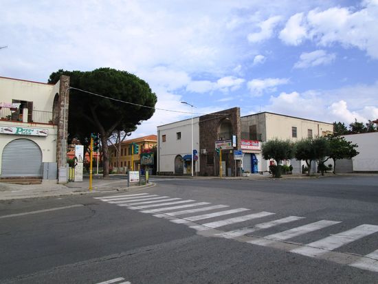 Piazza Roma: Der Platz in der Innenstadt präsentiert sich im typisch faschistisch-sachlichen Stil. Am Platz befinden sich das Rathaus und die Pfarrkirche zum Heiligen Pontianus im neoromanischen Stil, das Stadttheater, der Freizeitclub (Dopolavoro) und der Stadtturm (ehedem Liktorenturm). Im nahen befindet sich das Denkmal des Bergarbeiters.