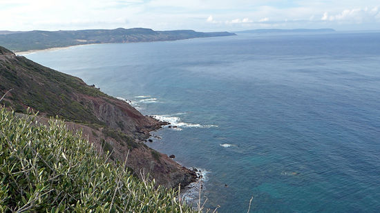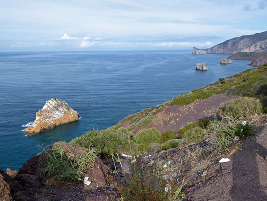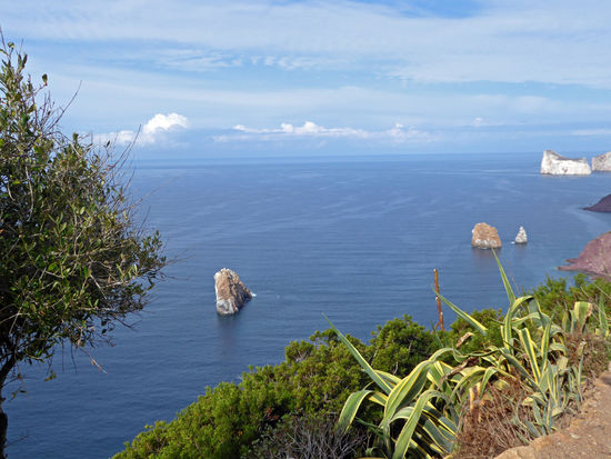 Doch das Schönste ist der Belvedere von Nebida. Ein phantastischer Aussichtspunkt mit weitem Blick auf den Golfo di Gonnesa und die Felseninsel Pan di Zucchero.