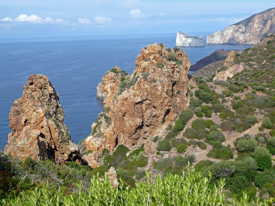 Der 133 m aus dem Wasser ragende Pan di Zucchero verdankt seinen Namen seiner weißen, wie mit Zucker bestäubten Kuppe. Der Fels besteht aus Sturzkalkstein und entstand aus der Meereserosion. Bis vor kurzem noch wurde die Felseninsel, Fläche 0,03 km², die von den Bewohnern gerne mit dem mehr als doppelt so hohen Pao de Acucar bei Rio de Janeiro verglichen wird, von Minenarbeitern bestiegen, die hier Galenit förderten. Nun soll der steilwandige Felsklotz für Kletterfreunde erschlossen werden.