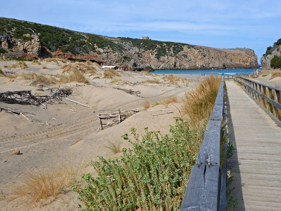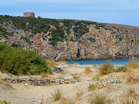 Unsere Tour geht weiter an der Küste entlang, durch eine traumhafte Felsenlandschaft, bis Cala Domestica. Cala Domestica ist auf der Staatsstraße 83 leicht zu erreichen. In Richtung Süden findet man nach Buggerru die Hinweisschilder, die bis zum Strand führen.