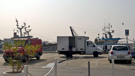 Weiter SS 67 bis Ravenna. Ab dort SS 309 Richtung Venezia. Gegen 12 Uhr Pause in Porto Garibaldi, direkt am Hafen, in einem Fischrestaurant, was sehr gut besucht ist.
