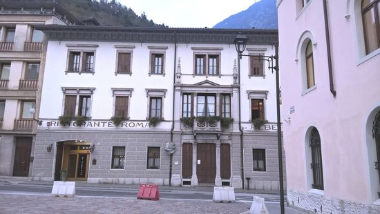 Gegen 17 Uhr erreichen wir Tolmezzo und unser vorgebuchtes Albergo Roma, ein historisches Haus mitten in der Altstadt. Wir werden sehr freundlich empfangen und Rolf kann sein Motorrad in eine abgeschlossene Garage fahren, nur für Motor- und Fahrräder. Super.