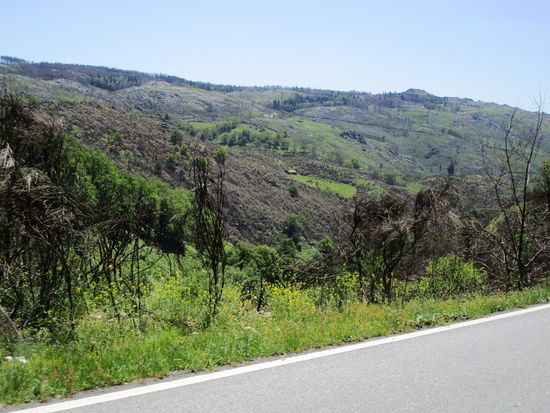 Vorbei an wunderschönen Häusern, oft stehen diese Ferienhäuser zum Verkauf. Vorbei an verbrannten Ginsterlandschaften, man riecht es noch.