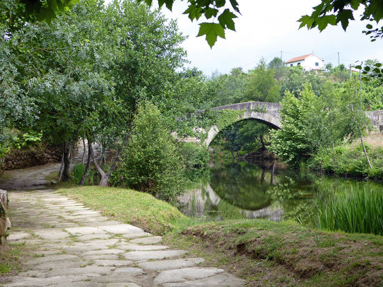 Ein gewundener mittelalterlicher Weg, von Granitmauern gesäumt, führt zur Ponte de Vilar de Viando. In der Nähe befindet sich die Capela do Senhor da Ponte.