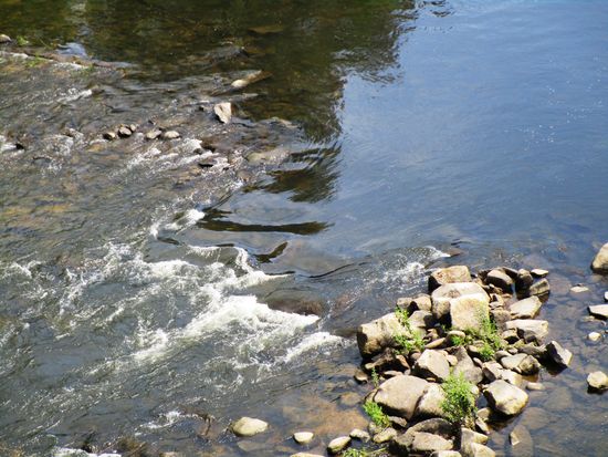 Nach der Besichtigung auch des Kreuzganges setzen wir uns in den ehemaligen Klostergarten unter einen schattigen Baum. Herrlich hier, denn es ist heute wieder sehr heiß. Ein kleiner Bach spendet etwas kühle Luft.