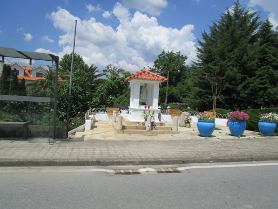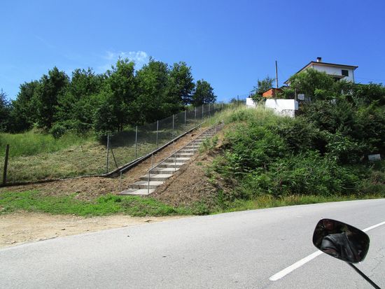 Gegen 14 Uhr verlassen wir den schönen Ort, nachdem wir noch eingekauft haben, 2 Forellen 2,10 Euro, 2 kleine Doraden 4,07 Euro. Außerdem noch Nektarinen, Erdbeeren, Kirschen, Tomaten, Salat, Eier, geräucherter Lachs, Schinken, Pate, Tempo. Unser Motorrad ist bis zum Anschlag voll.