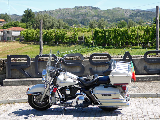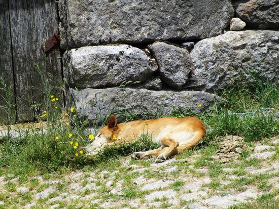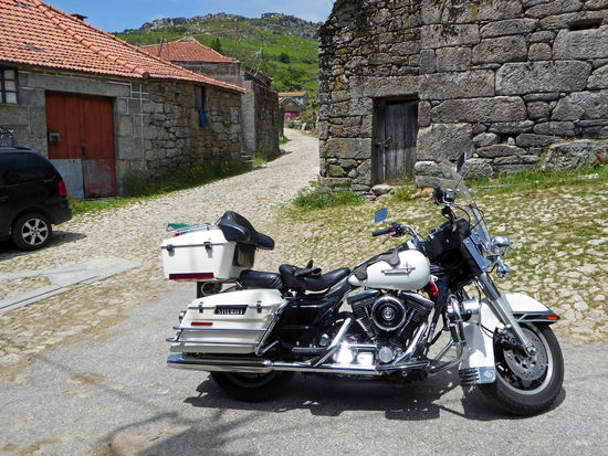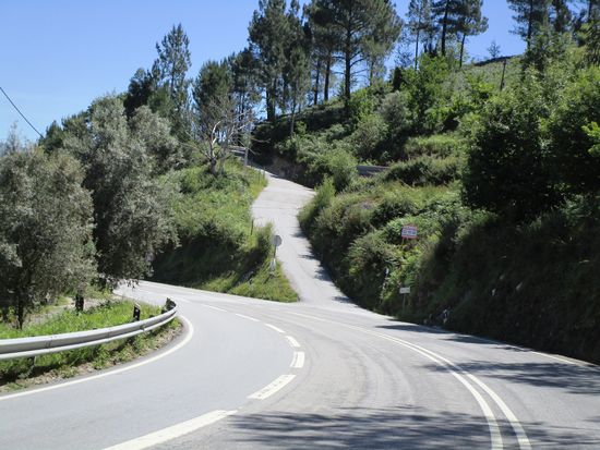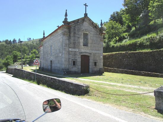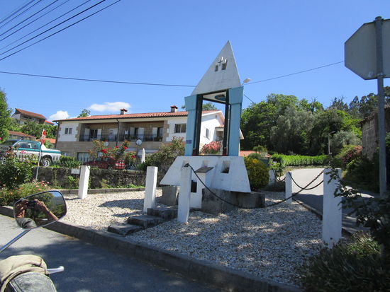 Und heute ist er mal wieder auf Abenteuer aus, fährt einen kleinen Bergweg hoch. Richtung Torrinheiras. Uriger kleiner Ort, Haus von 1782. Kein Mensch zu sehen. Die Hunde dösen und lassen sich von uns nicht stören. Aber dann wird der Weg schlechter, wir kehren um auf N 311 bis Cabeceiras de Basto.