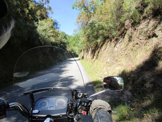 Eine alte Dame spricht uns an. Sie weist uns steil den Berg hinauf. Ich krieg langsam Angst. Plötzlich ist der Weg zu Ende. Nur noch Schotter und man weiß nicht, geht es links oder rechts weiter. Nirgendwo ein Schild zu entdecken. Also zurück. Nun kommt der Sohn der alten Dame. Er hat einmal in Luxemburg gearbeitet. Er erklärt uns, dass die Bergstraße für uns mit dem Motorrad nicht befahrbar sei und erklärt uns einen anderen Weg.