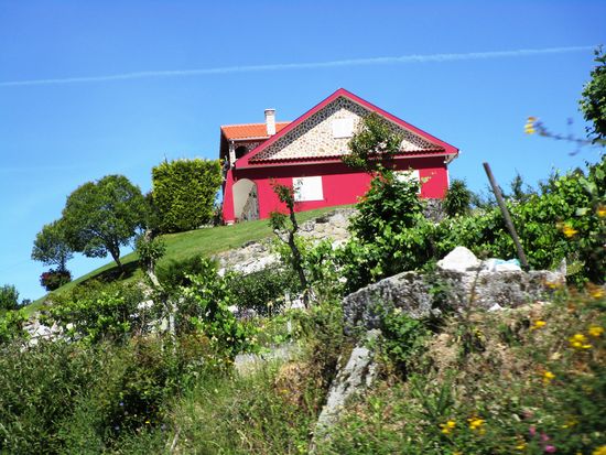 Nun fahren wir Richtung Cabeceiras de Basto, N 205, Bucos. Manchmal sehen wir wunderschöne farbige Häuser. Mir gefallen die sehr. In Rossas kurzer Halt. Für mich gibt es auf der Strecke viel zu sehen, eine herrliche Natur und hin und wieder interessante Häuser.