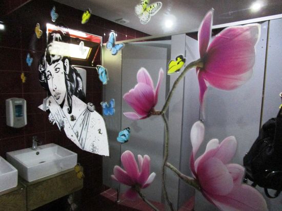Heute inspiziere ich einmal die Damentoilette, sehr hübsch gemacht. Ist ja klar, dass ich das fotografiere.