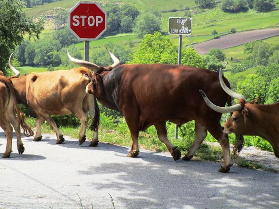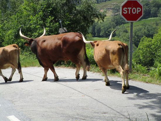 Unterwegs begegnet uns eine weitere Herde der schönen Barrosa-Rinder. Diese Tiere sehen einfach prächtig aus. Eines bleibt stehen, schaut uns an und ich bin froh, als es sich abwendet und weiter marschiert. N 205, N 210, N 304 - zurück zum Campingplatz. Wir sind fix und alle, es war wieder sehr warm heute, dazu die abenteuerlichen Straßen. Rolf hat Servicetag.