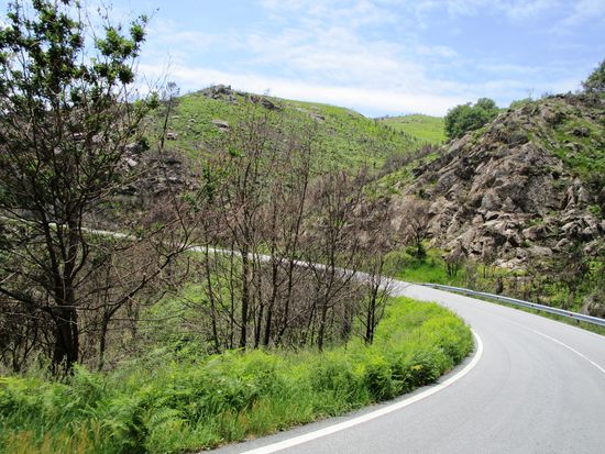 Weiter N 103 am Rio Cavado entlang. Passieren den schönen Stausee Barragem da Venda Nova. Das Bergland begeistert uns immer wieder. Hin und wieder entdecken wir verfallene halbfertige Häuser.
