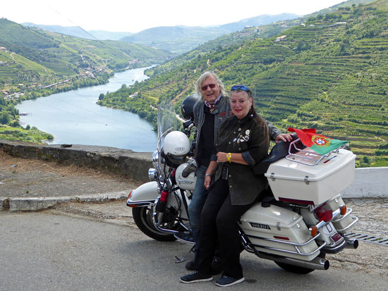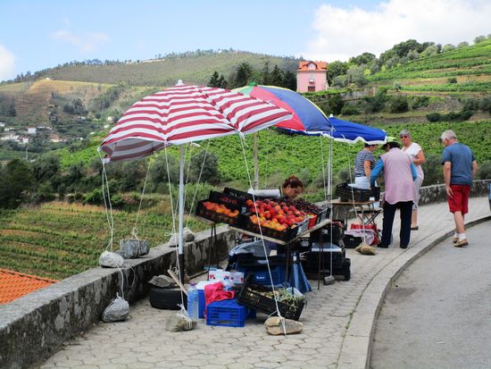 Unterwegs nach Peso do Regua kaufen wir oberhalb des Rio Douro wieder bei den Frauen, die dort ihre Stände haben, etwas Obst ein. Einige freundliche Touristen, die dort auch halten, um Fotos vom Rio Douro zu machen, fotografieren Rolf und mich. So haben wir mal wieder ein gemeinsames Foto.
