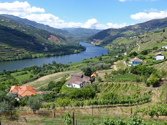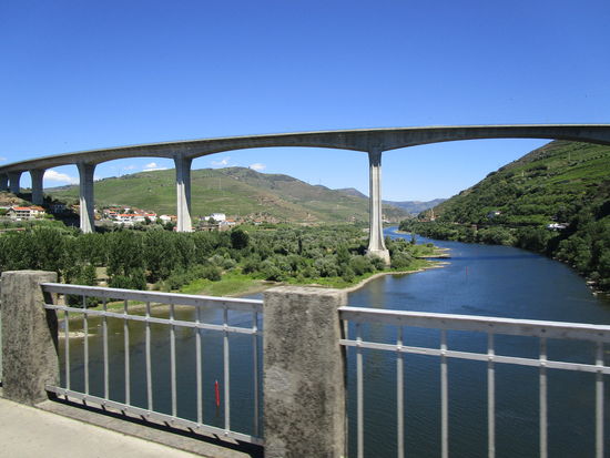 Die Besichtigung ist doch sehr anstrengend bei der Hitze heute, aber Rolf scheint das nichts auszumachen. Kurz vor 16 Uhr verlassen wir Lamego, zurück auf die N 2, Peso da Regua, Sta. Marta de Penaguiao. Hier finden sich riesige Weinberge und wir haben herrliche Aussichten.