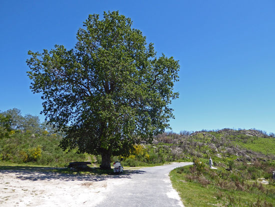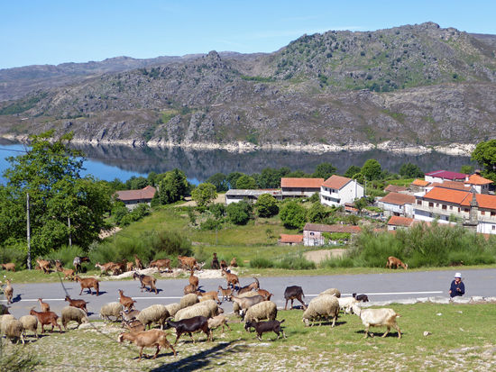 Und weiter geht die Tour. M 308 Sezelhe bis Montalegre. Auch hier kurzer Fotostopp. M 509-1 Cha, Sao Vincente, N 103 Venda Nova. R 311-1 nach Salto, R 311 nach Torrinheiras. Hier hat er eine tolle Begegnung mit den Barroso-Rindern, die wirklich furchterregend mit ihren geschwungenen Hörnern aussehen. Aber sie schauen nur, Gott sei Dank. Weiter durch das Gebirge, bis Cabeceiras de Basto. Dies ist eine traumhafte Strecke durch eine herrliche Natur. Rolf hält einige Male, um zu fotografieren.
