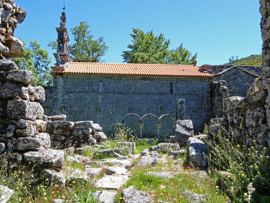 Zunächst werden die Ruinen des alten Klosters Mosteiro de Santa Maria das Junias besichtigt. Anschließend stärkt er sich mit einer Suppe und dann kauft er im Ort sehr gutes Brot und Honig für Zuhause.