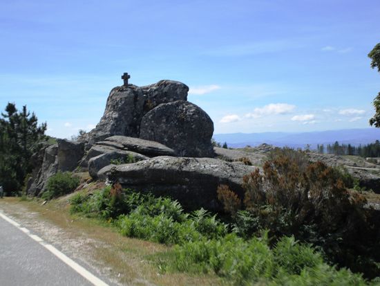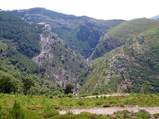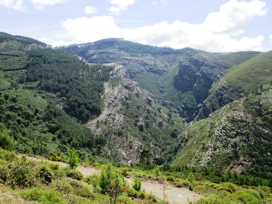 Route: N 304 bis Ermelo, dann hoch hinauf in den Naturpark Serra do Alvao, abenteuerliche Straße, M 1204-1. Aber wie man weiß, gefallen Rolf solche Wege. Und eines ist auch richtig, die Landschaft hier entschädigt auch für die Straße. Herrliche Ausblicke, viele blühende Blumen und Viecher sind zu sehen. Leider kann man nicht alles fotografieren.