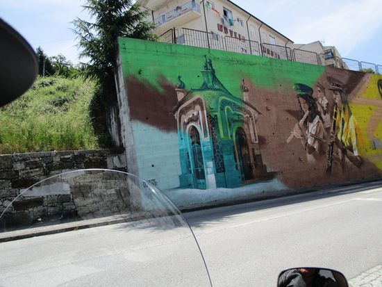 Kleine Kapellen, versteckt hinter Bäumen, sind zu sehen. Und nein, Rolf hält nicht an. Da ist er eisern. Weiter N 2. Schöne Dörfer mit prächtigen Häusern, gesichert mit Alarmanlagen, überall herrliche Blumen. Ja, es gibt immer etwas zu sehen. Bei mir kommt keine Langeweile auf, im Gegenteil.