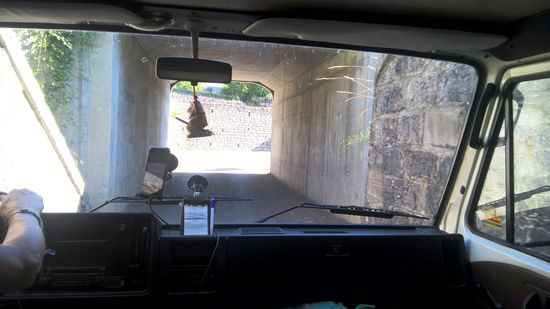 Rolf macht Service, Wasser, Abwasser, Toilette, ehe wir um 9.15 Uhr starten. Die Camper wundern sich auf den Campingplätzen immer, dass ich nie zum Spülen laufe. Es ist doch viel bequemer im Bus.