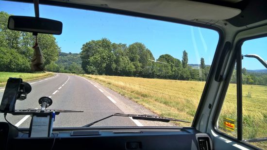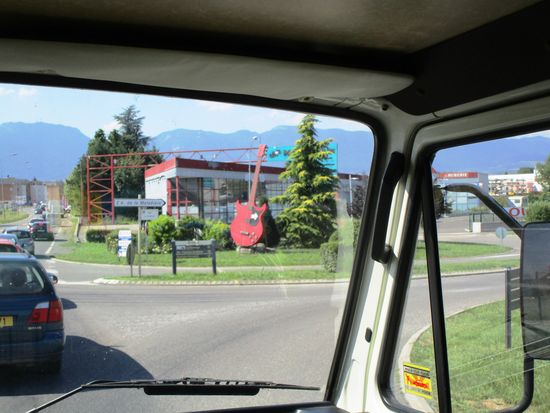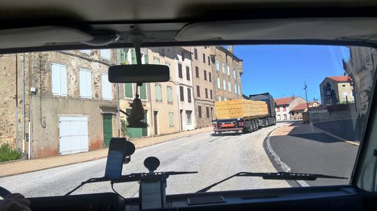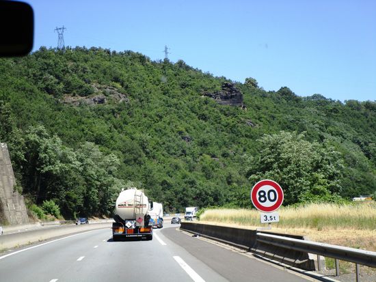12.15 Uhr - Saint-Etienne. Viel Verkehr. Wollen am Rastplatz Aire de la Chaburre halten, 12.25 Uhr, aber unmöglich, alles sehr voll.