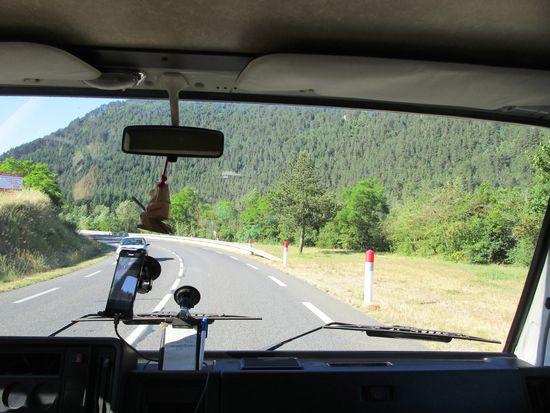 Weiter N 88 Richtung Saint-Etienne, D 988. Über den Col de Pertuis, 1.026 m, 11.35 Uhr.