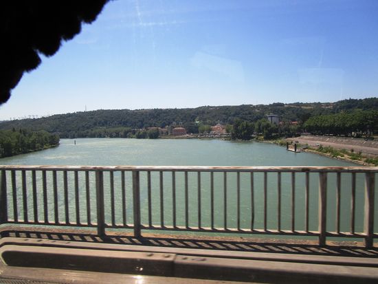 13 Uhr - wir passieren die Rhone, Bild. A 46 Richtung Straßburg. N 346 / E 15 Richtung Paris. Hier fahren die Autofahrer wie die Verrückten, Spur wechseln, alles lebensgefährliche Manöver. Weiter sehr heiß.