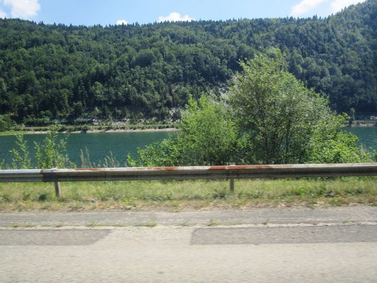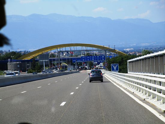 15.20 Uhr sind wir am Lac Sylvan. Kann während der Fahrt zwei Bilder machen. In Bellegard sur Valserine D 101 Umleitung. A 40 Richtung Genf. Umleitung ist mal wieder schlecht beschildert. AB Kosten 6,30 Euro. Ausfahrt 7 Gex. Unser Navi hat inzwischen den Geist aufgegeben.