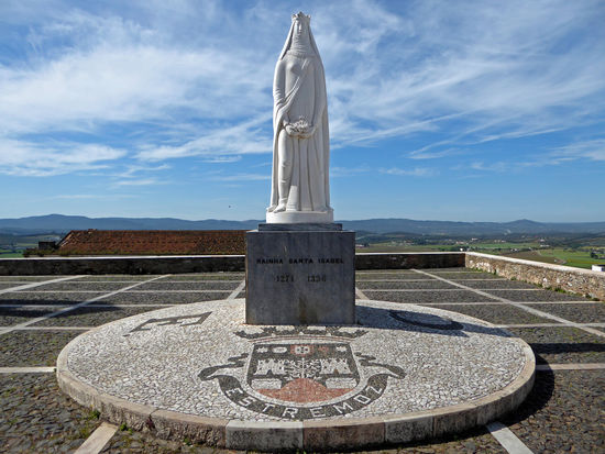 Die Altstadt von Estremoz wird beherrscht vom Schloss auf dem Berg. Dessen Bergfried, Torre de Menagem und der Königspalast, in dem die Rainha Santa Isabel am 4. Juli 1336 starb, wurden unter König Afonso III. 1258 begonnen. Da der Bau des Turms die Regierungszeit dreier Könige in Anspruch nahm, wird er auch der Turm der drei Kronen genannt - Torre das Tres Coroas. Eine Explosion im Pulverarsenal 1698 zerstörte die Burg.