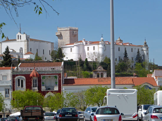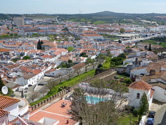 Wir haben von hier einen wunderbaren Blick über die Stadt, u. a. auf die Stierkampfarena, eine Reitschule und vieles andere mehr. Man erkennt auch, dass die Festungsmauern um Estremoz vollständig erhalten sind. Das sieht schon sehr beeindruckend aus.